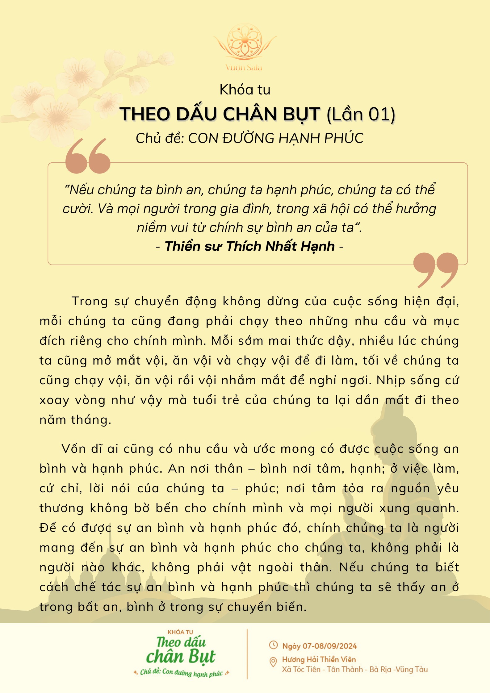 Khóa tu " THEO DẤU CHÂN BỤT" Lần thứ 01