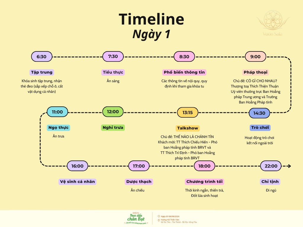 Time - line của khóa tu " THEO DẤU CHÂN BỤT" Lần thứ 01 có gì ?