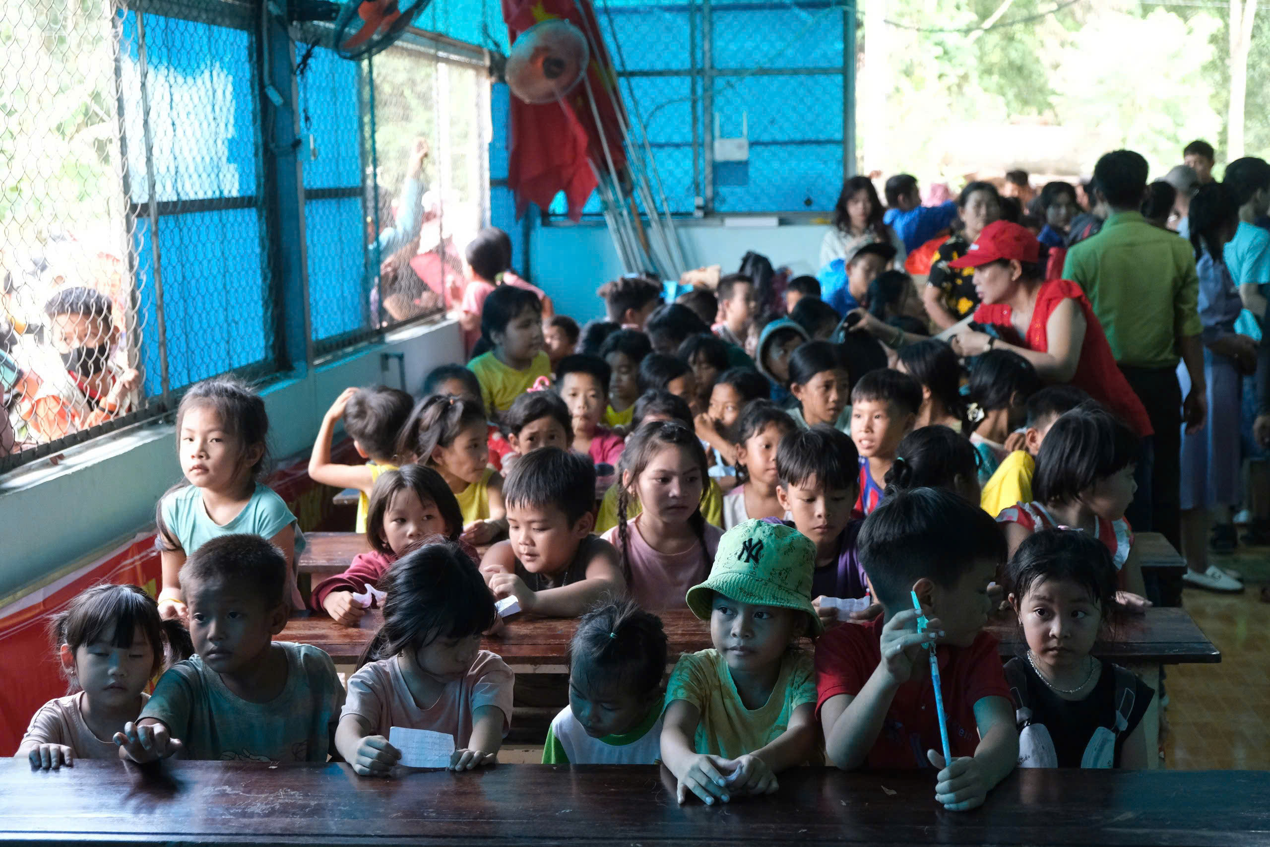 Các em tập trung tại Nhà Văn Hoá để sinh hoạt và nhận quà