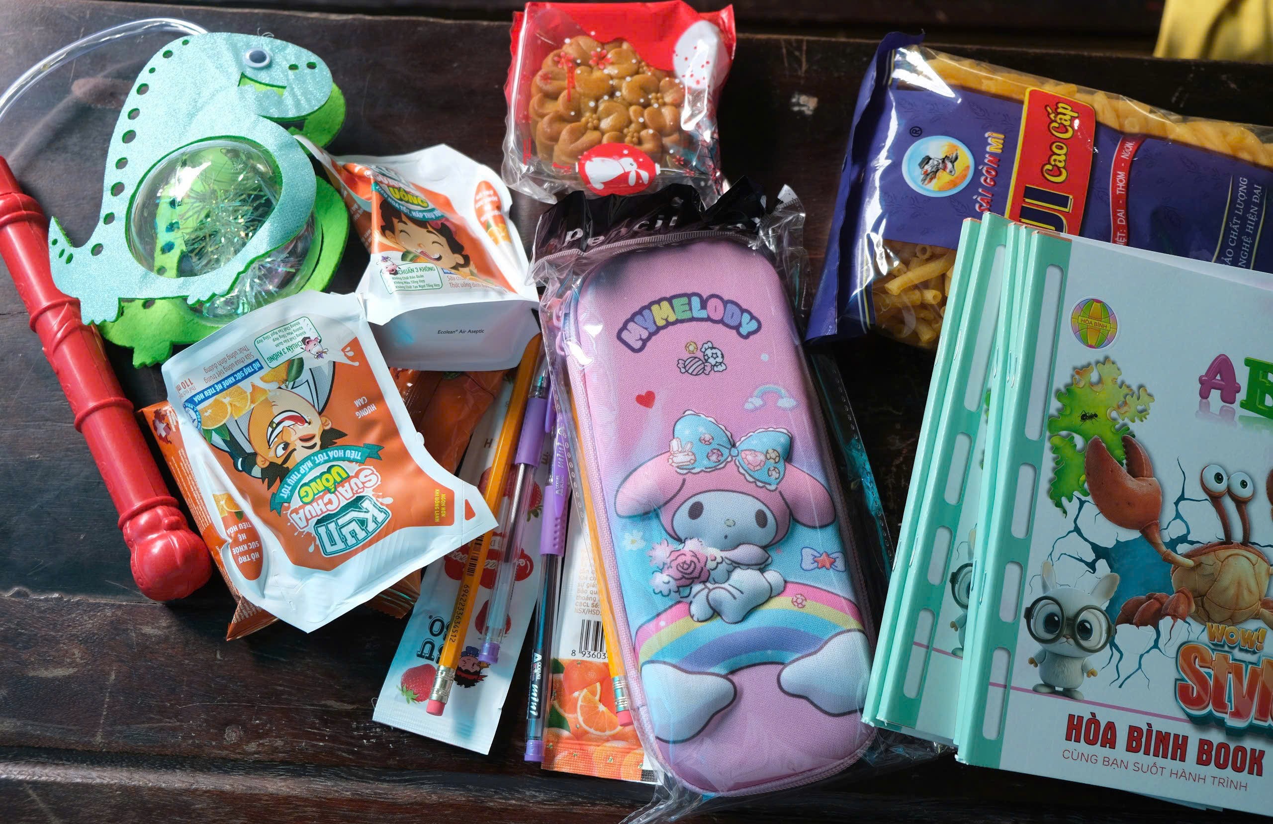 Một số phần quà do tình nguyện viên Vườn Sala chuẩn bị.Các em tập trung tại Nhà Văn Hoá để sinh hoạt và nhận quà