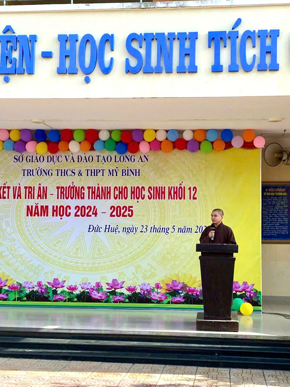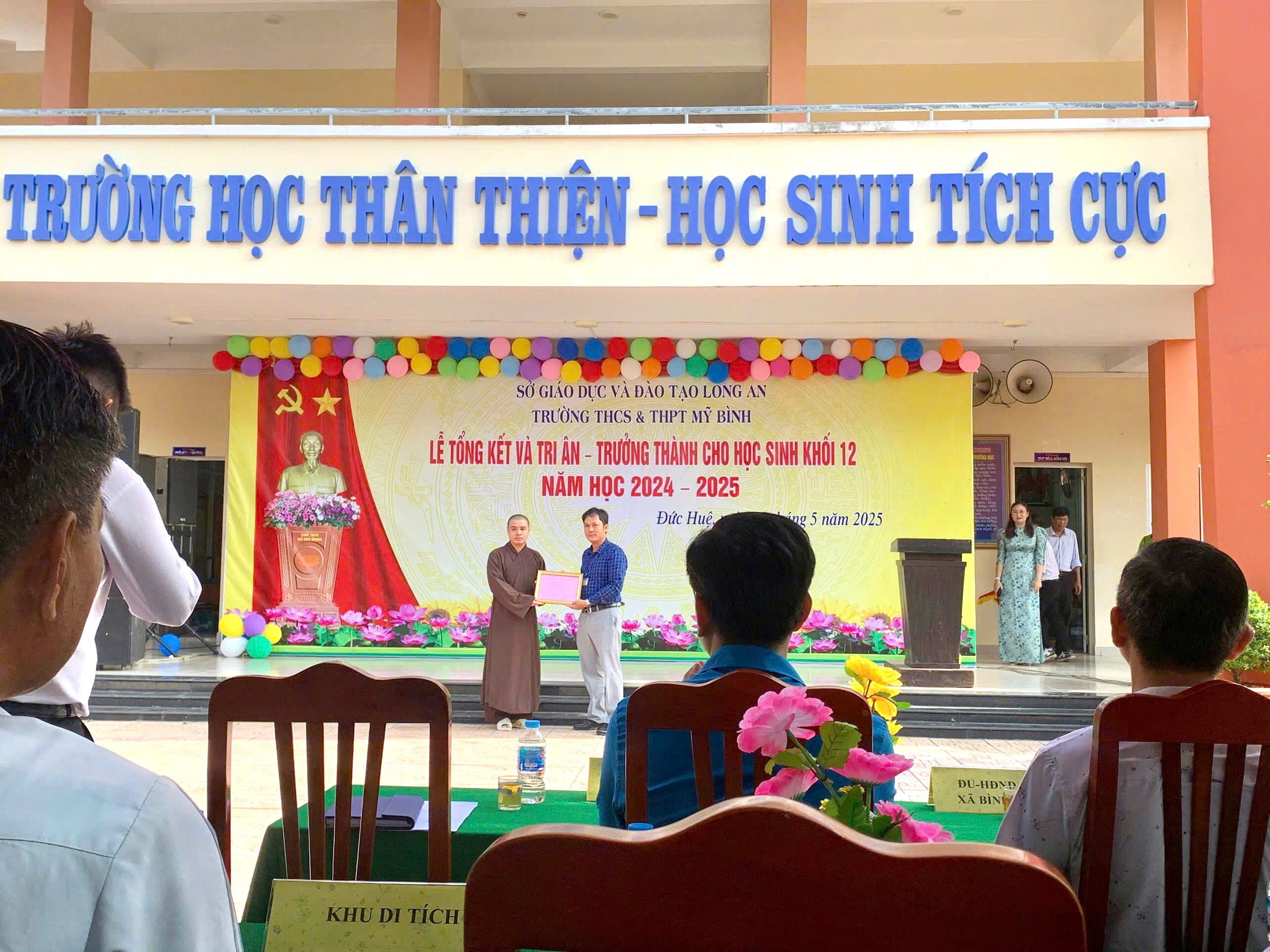 Tại lễ tổng kết, Đại đức Thích Tánh Mẫn đã có lời chia sẻ với các em: “Hiền tài là nguyên khí của Quốc gia. Trong chữ Hiền tài bao hàm hai phạm trù rất quan trọng đó là đạo đức và thông minh. Người thông minh nhưng không có đạo đức thì nguy hiểm cho đất nước, người có đạo đức nhưng không thông minh thì đất nước khó ổn định và phát triển. Trong kỷ nguyên mới của đất nước; kỷ nguyên vươn mình, hướng đến sự phát triển và văn minh. Để có một đất nước văn minh thì xã hội phải văn minh, muốn xã hội văn minh thì mỗi cá nhân phải là người văn minh. Do vậy, các em là tương lai của đất nước, các em phải là những người văn minh, văn minh ngay còn trên ghế nhà trường. Hãy biểu hiện mình là người có văn minh trong ứng xử, trong lời nói và hành động với các bạn cùng lớp, cùng trường và ngoài xã hội. Đó cũng chính là sự tri ân sâu sắc của các em đối với cha mẹ, thầy cô giáo của các em. Cuối lời, Đại đức kính chúc các bác lãnh đạo chính quyền các cấp, thầy hiệu trưởng, ban giám hiệu và giảng viên nhà trường, cùng toàn thể các em học sinh có một ngày tổng kết ý nghĩa, vui vẻ! Chúc các em lớp 12 bước sang một chặn đường mới, một tương lai mới tươi sáng và tốt đẹp”.